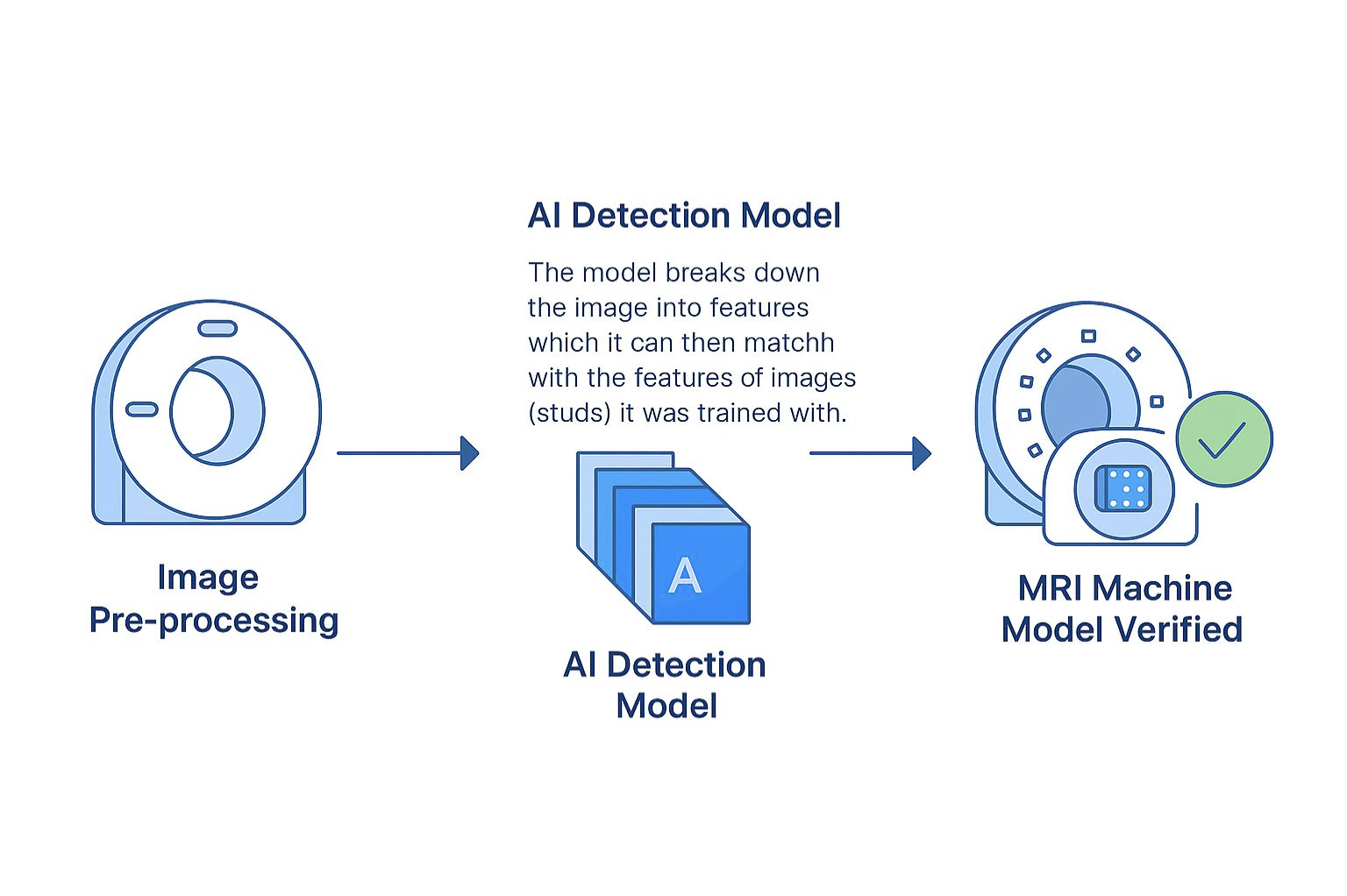 Siemens Healthineers set out to improve how MRI machines are identified and validated during routine field inspections. Traditionally, this meant technicians manually counting calibration studs—an error-prone and time-consuming process that varied across machine models and conditions.